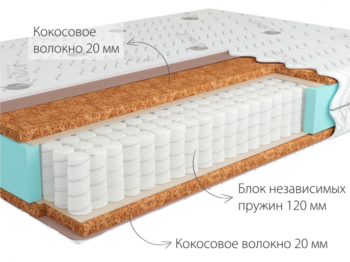 Максимальный уровень жесткости этой модели создают настилочные листы из кокосового волокна, пропитанного натуральным латексом. Это сочетание материалов дает не только отличные эксплуатационные характеристики, но и высокую надежность, и длительный срок службы.